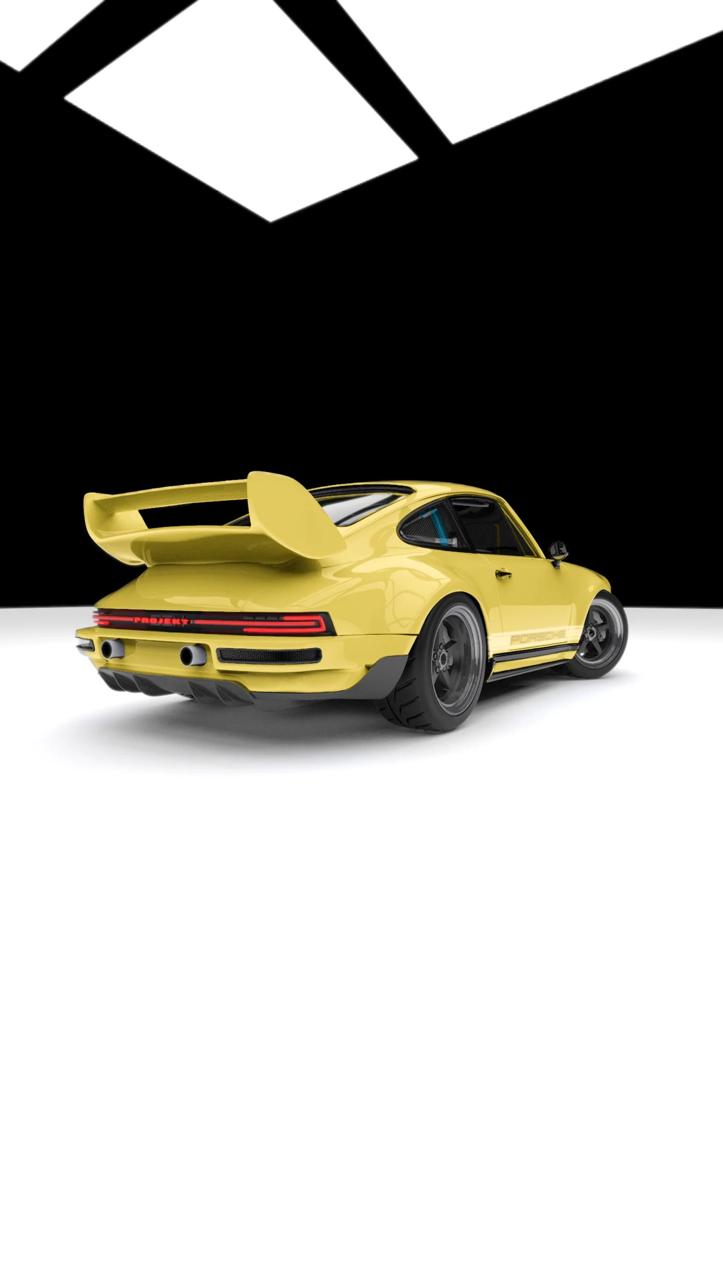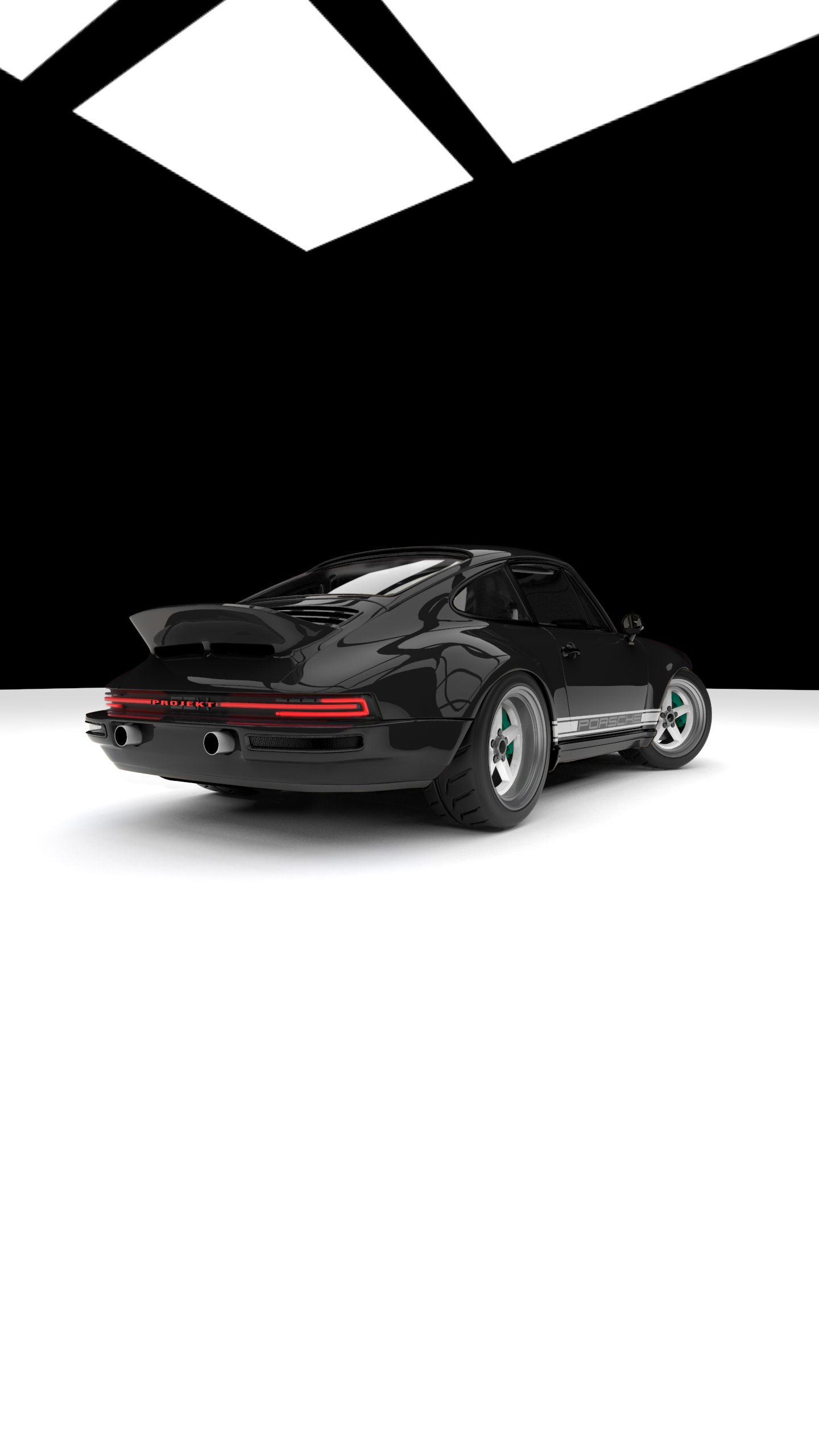 All of the exterior lighting of every ProjektSIX build is fully bespoke and are in-house designs you won’t see on any other Porsche car; such as our modernized, yet retro styled, rear LED tail light unit. This light is absolutely a centerpiece of the exterior styling and seeing it at night from behind will resemble that of a modern day Porsche car, until you approach closely and see “PROJEKT” fully illuminated as the center of the DRL. You’ll also notice the unique rectangle shaped Bi-LED headlights, so when you see it approaching, there will be no mistaking that it’s a ProjektSIX 911. Another unique feature about the rear that you’ll notice is the dual bumper exit Titanium exhaust tips giving the vibes of a LaMans race car or even that of the mighty Carrera GT of 2005. These are all design features that will be included as standard on all ProjektSIX Client Commissions.